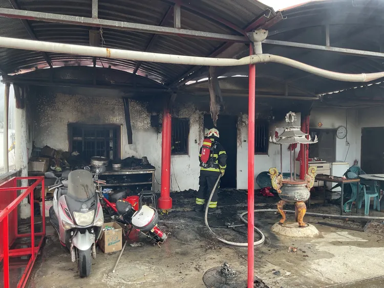 台東縣消防局表示,現場為1層樓鐵皮建築,宮廟及住宅使用,燒毀室內裝潢及傢俱,燃燒面積約33平方公尺;現場有1名91歲阿嬤於逃生時不慎吸入濃煙嗆傷,無明顯外傷,呼吸喘、意識正常,由豐田91送台東基督教醫院處置。起火原因有待調查。