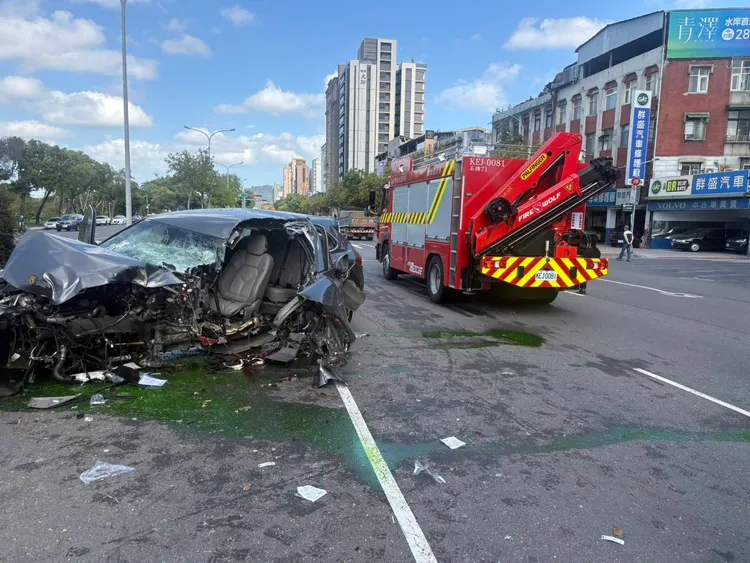 警方調查,當時47歲謝男往淡水方向行駛,變換車道時,車尾與36歲李男車頭碰撞,導致李男撞上分隔島,警消到場將李男與乘客、謝男送醫,駕駛酒測值均為0,肇事責任釐清中。