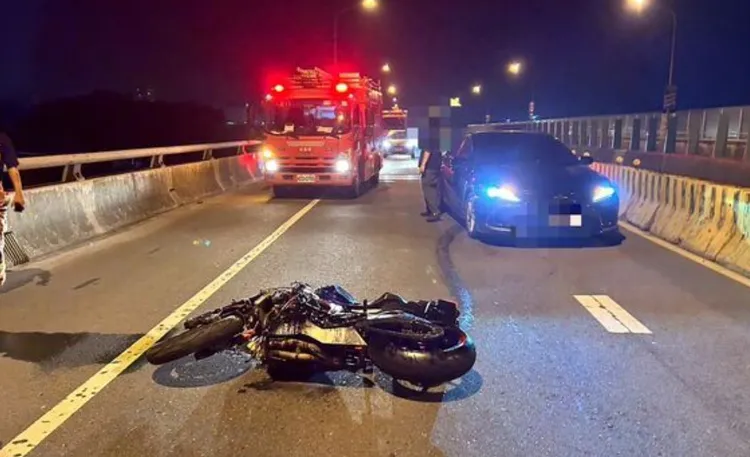 昨天晚間11時許,陳女騎車行經台61線約3公里處往八里方向,疑似失控自摔倒地,倒臥於快速道路車道上,後方由21歲呂姓男子駕駛的貨車閃避不及,當場輾過。