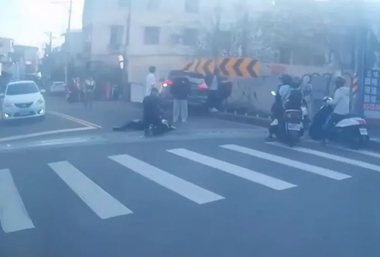 根據後方車輛行車紀錄器畫面,當時車輛行進方向為逆光,相當刺眼,黃男撞上女學生後還持續往前開上分隔島,再撞擊路旁的交通指示牌才停住。
