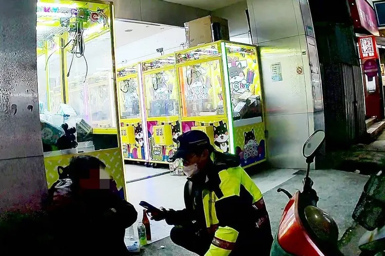 大園警分局表示,大園派出所副所長陳健綜、警員邱重霖昨天晚間18時許執行巡邏勤務時,在大園區中山南路一處夾娃娃機店前,發現一名蔡姓男子(43歲)獨自蹲坐在店門口,且不時東張西望、眼神閃躲,神情顯得十分可疑,2員見狀隨即上前關心查證身分。
