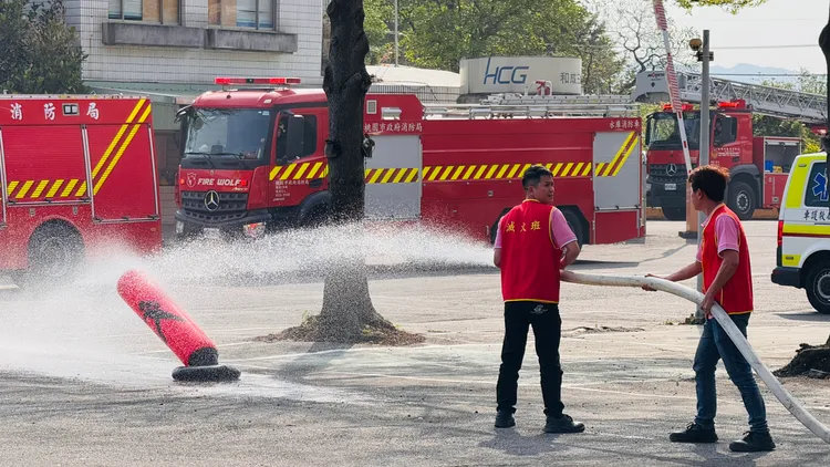 搶演過程中,指揮官特別調度「消防機器人」進入高風險區域進行防護射水,高效壓制火勢避免延燒至鄰近廠房;以及消防員在搜救昏迷員工時,使用「多功能搬運扁帶」迅速將受困者帶出火場,該裝備體積小、可收納於口袋,操作極為便利,在狹窄且視線不佳的倉儲區中,協助消防員快速固定並拖帶患者,顯著提升搬運效率,成功為傷患爭取救命時間。