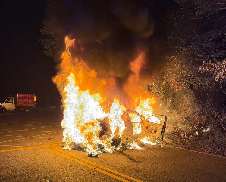 桃園警分局表示,林姓男子(約24歲)上月31日23時23分許,駕駛自小客車沿桃園區成功路三段往虎頭山方向行駛,途經一處彎道時不慎打滑,車輛衝撞路旁電線桿,並冒出白煙。後方同行的車友見狀,立即停下車衝上前解開林男的安全帶,協助脫困至車外,車輛隨後瞬間起火燃燒。