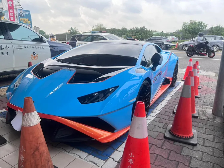 侯男駕駛的藍寶堅尼Huracán STO超跑,新車價破2000萬元,但因酒駕拒測須移置保管,員警小心翼翼將車開回小港分局桂陽派出所,今天再請拖吊車移到拖吊場,且牌照也要吊扣2年,車主繳完罰款領回後,也只能放在車庫不能上路。