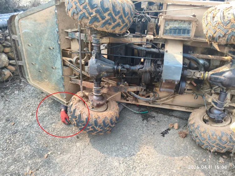 南投縣消防局今天下午2時49分接獲報案,埔里鎮北村路大坪頂地區發生農用噴藥車翻覆意外,1名男子被壓在噴藥車下方動彈不得。消防局立即出動3車8人前往搶救。