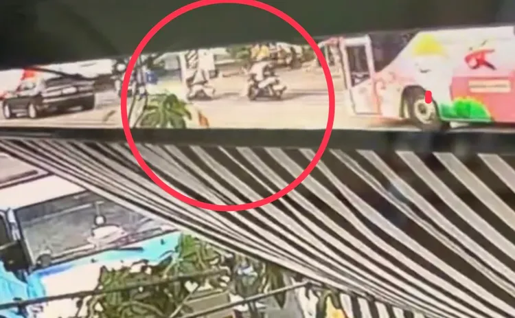 現在另一個角度的監視器畫面曝光,可看出當時有另部遊覽車停在路肩等著載學生,占用部分外側車道,這時鄭女在內的多名機車騎士到了路口,不是繞過該部遊覽車,就是準備減速停等,這時戴姓女大生從後方騎來,看起來速度不快,但感覺沒注意前方車況,撞上鄭女車尾,她倒地後江男駕駛的遊覽車從內車道駛過,輾壓過鄭女導致這場不幸意外。
