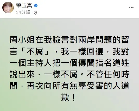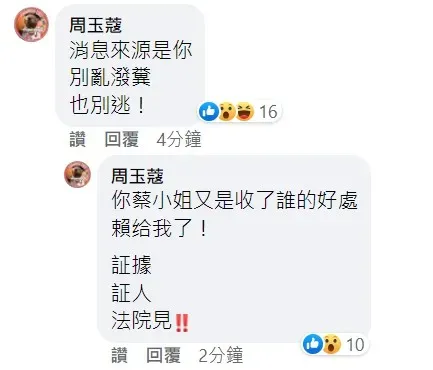 周玉蔻回擊。翻攝自蔡玉真臉書