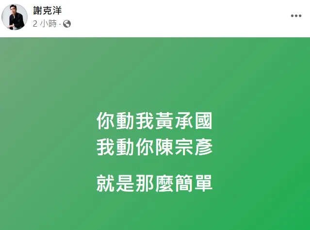 首先,名嘴李正皓表示,為什麼時隔11年,陳宗彥會被爆料召妓,而且對話紀錄、判決書、酒店名稱所有資料都有?不用多想,就是民進黨內反賴派系的反撲。而曾參選桃園市議員的國民黨新生代謝克洋,也在臉書發文說:「你動我黃承國、我動你陳宗彥,就是那麼簡單」。