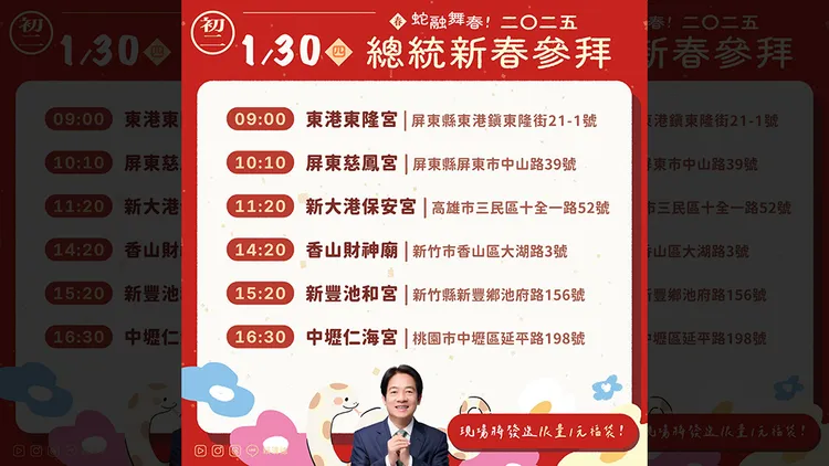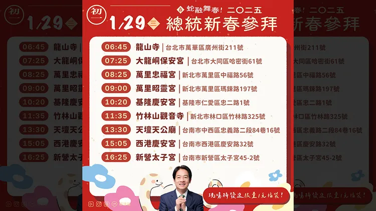 賴清德新春參拜行程: