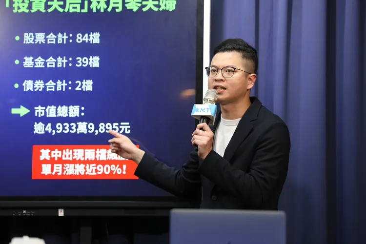 國民黨今(16)日召開「投資天后林月琴爽拿社福錢,不幹正事成破口!《月琴檔ETF》大揭露!」 記者會,國家政策研究基金會副執行長、桃園市議員凌濤、副發言人康晉瑜等出席。