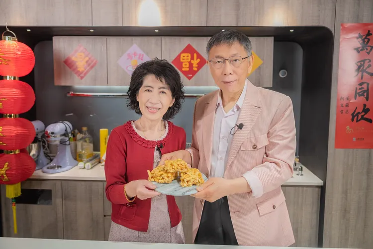柯文哲陳佩琪親手製作沙琪瑪,祝福大家一整年都能甜甜蜜蜜,柯文哲笑說,自己對甜點製作沒有信心,「擔心做出來的甜點不能看、也不能吃」,因此邀請專業甜點老師Nick到場指導。