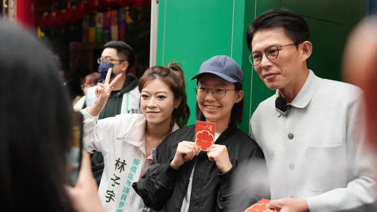 政治人物大年初一紛紛走春拜年,民眾黨主席黃國昌今天也與同黨議員陳世軒等人,一早連跑新莊武聖廟、慈祐宮、板橋慈惠宮、接雲寺等6間廟宇參拜,向民眾發送福袋,過程中一度遇到民眾批評「擋國防預算」,並嗆聲「美國人的爸爸加油」,黃國昌未多做回應。