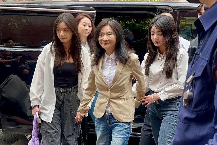 下午2點15分,應曉薇穿牛仔褲打扮休閒,帶著2位正妹女兒搭乘一輛要價約330萬元的Toyota Alphard保母車,抵達台北地方法院。下車時,母女三人手牽手一同步入北院,應曉薇面帶微笑回應媒體,她身穿米色外套搭配白襯衫與牛仔褲;女兒應佳妤則身穿白色長袖襯衫、搭配黑色長褲,另一名女兒則穿著白色罩衫內搭黑上衣與牛仔褲,整體造型簡約俐落。