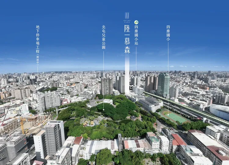 在此背景下,位於G5四維國小站旁的住宅案「陸一慕森」主打捷運、公園、學校三大條件。基地距離捷運站約180公尺,正對北屯兒童公園,並鄰近四維國小,形成「步行即達」的生活圈。規劃上主打2房產品,鎖定自住族群,強調長期居住需求。