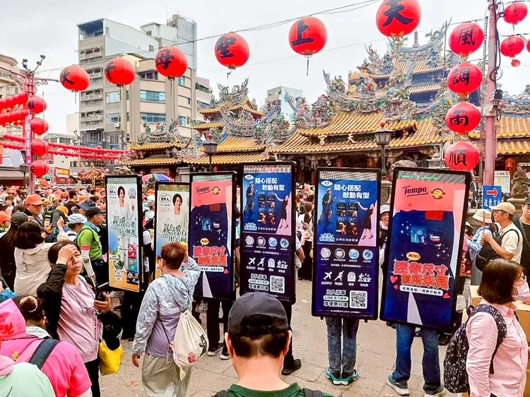 為呼應年度宗教盛事,包大人推出「神秘發光守護者」創新應援,燈箱人穿梭於人潮之中,搭配LED宣傳車全程隨行,成為遶境隊伍中的超高辨識亮點。品牌更於白沙屯與大甲鎮瀾宮雙場域發送超過2,000份平安褲組合包,內含防漏褲、濕紙巾等實用物資,直接解決信眾長時間行走與環境變化帶來的不便。