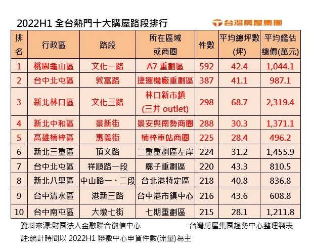 整體而言,全台上半年度申貸熱門路段集中於中部以北,南台灣量體明顯落後北、中台灣。