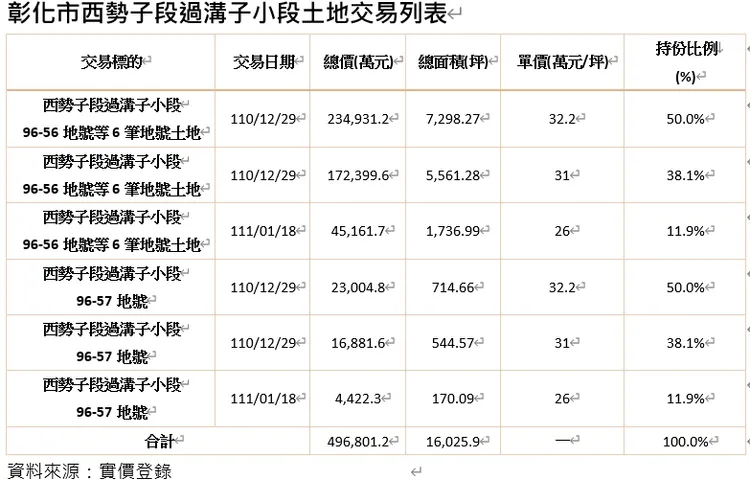 經查,彰化市精華地的永安夜市,從去年至今年,共拆分整合7筆交易,總計面積逾1.6萬坪,總計價格49.68億元出售,其中最高一筆總價達23.49億元,新買方則是來自台中七期的允將建設,也登上彰化市實價登錄史上總價最高的土地交易。