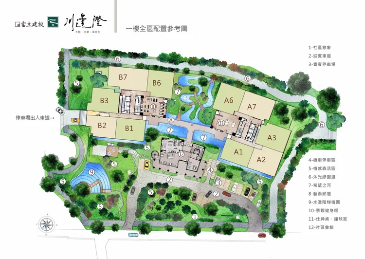 【川邊澄】由富立建設股份有限公司投資興建,規劃2棟,地上23層、地下4層建築,共有274戶住家。格局純3房規劃,1層6戶,3電梯,坪數為52~62坪,基地面積3217.9坪,規劃24.03%超低建蔽率,享有河景第一排絕佳視野,同時基地上打造了自然繽紛的會館,置身蜿蜒碧水景觀庭園、藝術廊道、舒心候客區、健身房、多功能會議室、韻律室、水景食堂、料理區、交誼廳、陽光泳池,多元化的公共設施適合漫步生活,也豐富了孩子空曠逸遊的體驗,是繁忙的都會生活中,一處轉換節奏的絕佳舒壓場域。