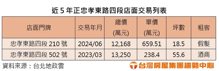近年東區因國際品牌出走,長期租金偏高,導致人流下滑,店面空置率上升,加上受到疫情衝擊,近年店面交易趨冷;台灣房屋信義安和特許加盟店店東廖德欣表示,近期東區店面出租率增加,小店面的租金門檻低,可望很快就出租,以該店面交易的總價推算,未來月租金只要高於20萬,就符合收租投資效益。