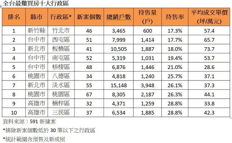 591新建案分析,待售量反映區域賣壓高低,以這幾年房市之熱,即便建商卯起來獵地及蓋房,仍無法滿足市場胃口;如今又碰上房貸拉警報,可預期未來「缺錢、缺房、缺土地」的情形將更加嚴峻。以新竹縣竹北市來看,賣壓會如此低,關鍵就在於當前縣治、高鐵等精華區域內,不是地主惜售使業者無地可買,就是建商轉向外圍開發,導致整體推案進入真空期,現在即便當地民眾口袋深,還不一定有機會能買到新房。