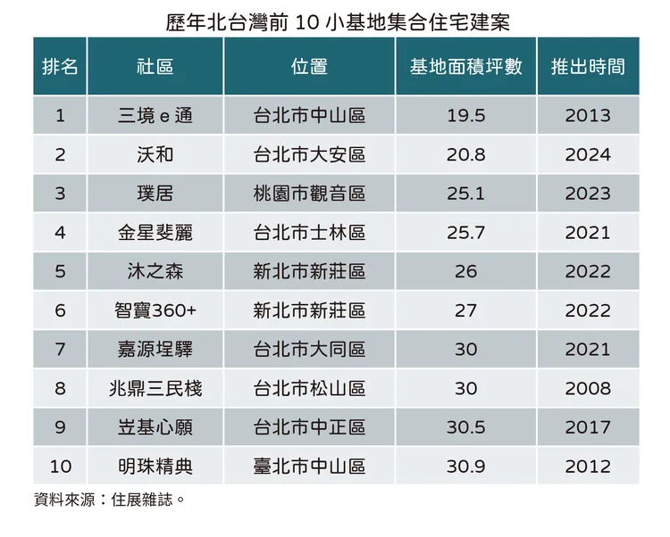 除了台北市外,去年在桃園市觀音工業區的「璞居」,前年在新北市新莊區的「沐之森」和「智寶360+」均可見基地面積僅25.1至27坪的公寓案,因具備產業區就業人口的住屋需求,或是交通機能和低總優勢,建商預期買氣下,對小案也有信心。