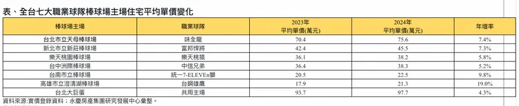 本次賽會MVP「台灣隊長」陳傑憲就隸屬於統一7-ELEVEn獅,他們的主場位於台南市立棒球場,近年來房價漲幅也相當明顯。陳金萍分析,台南棒球場周邊商圈發展成熟與當地學區完善,吸引眾多人口移入,目前棒球場周邊房價仍屬親民,對自住買方有十足吸引力,相對低的房價基期也帶動房價明顯上漲。