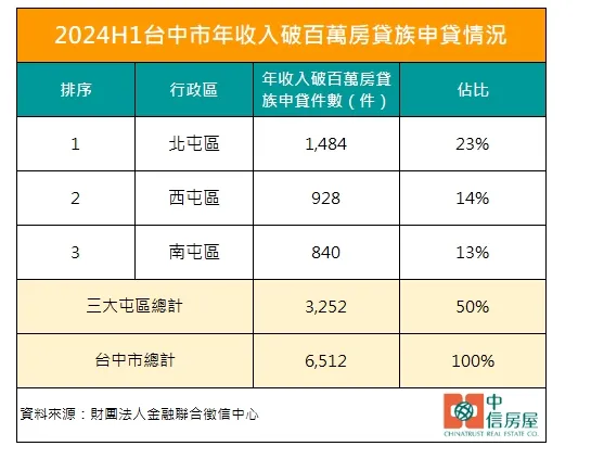 根據聯徵中心資料,2014年上半年台中市年收入破百萬的房貸族共申貸3,313件、佔申貸總數10,502件的31.5%,但到了2024年,這一比值已上升至38.3%、接近4成,顯示出台中市的買方財力確實逐漸增強。中信房屋文心河南加盟店店長陳珮甄指出,中部本身就是傳產重鎮,再加上中部科學園區與台積電等大型企業吸引了大量科技人才的聚集,隨著企業主、企業高層及科技新貴的增加,高收入族群的比例自然也跟著上升。