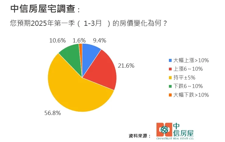 中信房屋研展室副理莊思敏指出,從資金面來看,內需經濟持續升溫,加上在AI浪潮的推動下,出口成長動能也相當可期,主計總處預測2025年台灣經濟成長率可以達到3.29%,顯示目前台灣房市仍有強勁的資金動能。再從成本面來看,營建成本、原物料價格、土地取得成本等目前仍維持在高位,也為房價提供了一定的支撐力,因此可以判斷短期內台灣房價出現強烈震盪的可能性並不高。然而,國際政經局勢詭譎多變,房市信用管制政策與銀行房貸限額更大大限制了消費者的購買力,導致市場交易量大幅下滑,這些因素也讓後續的房市走向充滿了不確定性。