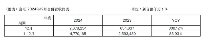 富旺表示,受惠於旗下建案交屋入帳,包括高雄【微美居(鉑金特區)】、新竹【華時代】等皆穩健交屋且認列入帳,雙雙助力富旺12月營收猛進優異表現,創下2024單月營收高紀錄,同時,旗下預售屋台中【富旺千蘊】、台中【富旺敦厚】、彰化【艾美莊園】也保持良好的銷售表現,有助未來營運穩健成長。