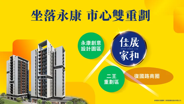 受益砲校搬遷議題,僅距永康創意設計園區3分鐘車程的「佳晟家和」,詢問度近日持續加溫;「佳晟家和」坐落永康市中心地段,現擁萬坪忠孝運動公園與永信國小學區,下樓就是成熟復國商圈,生活機能十分完善;更與32公頃「二王市地重劃區」相鄰,區內永康全民運動館動工等整地計畫頻頻,未來重劃區增值願景指日可待,廣受首購族群關注。