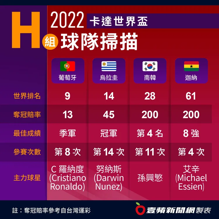 37歲的C羅本季在職業聯賽過得並不開心,這次回到國家隊,勢必要拿出渾身解數,向外界證明「我還能踢」。今年將是C.羅生涯第5次參加世界盃。難能可貴的是,他在前4度參賽都有進球紀錄,而今年他也尋求成為史上第1個在5屆世界盃都有進球的球員。