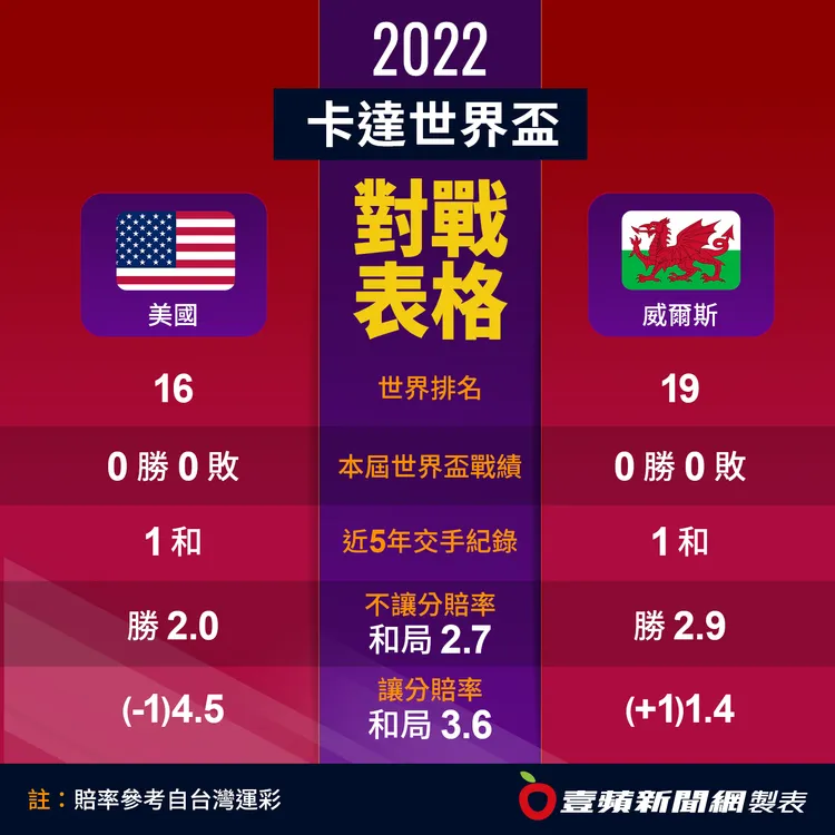 威爾斯近況不佳,不僅3連敗,雖然對手都是歐洲勁旅,但連5場失球,後防仍是令人擔憂。美國最近3連不勝,還以0比2不敵日本,近況也不理想。2隊曾在2020年國際友誼賽交手,最後都未能進球和局收場。