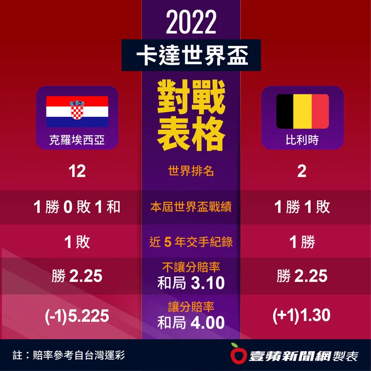 更麻煩的是,第2戰打完比利時幾名主力球員,竟然在休息室大打出手,讓球隊處於內鬨的風暴中,偏偏在這種不利情況下,比利時還要背水一戰,今天對克羅埃西亞,必須贏球才能確定晉級,如果踢平,還得祈禱加拿大擊敗摩洛哥才能靠比淨勝球爭取晉級,紅魔鬼面臨極大壓力。