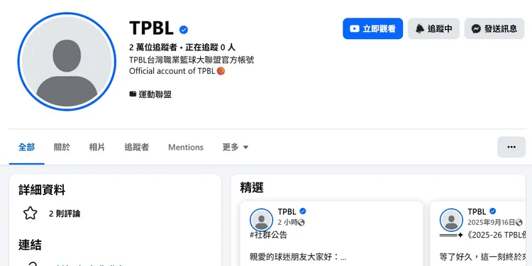 TPBL進一步表示,儘管頭貼異常,賽事相關資訊、公告與互動都將照常發布,不會影響球迷掌握聯盟動態。目前已積極與平台方處理中,將盡快恢復專頁完整樣貌。