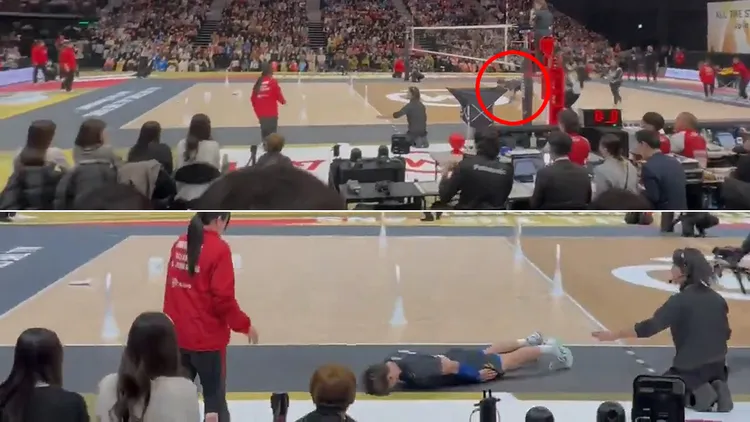 西田有志2月1日在全明星賽在挑戰發球準度時,一球命中一名女性工作人員,他見證立即朝對方狂奔,還沒過半場、在網前就整個人撲向地面,之後臉部向下全身貼著地板向對方滑行而去,女性工作人員被嚇得連退數步。
